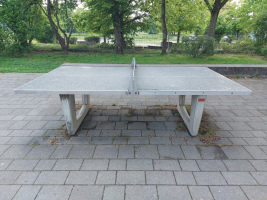 | Beschreibung | Hersteller: Dywidag Platte: Plangeschliffener Betonstein, Stärke: 6cm Untergestell: glatter Sichtbeton, grau Spielfeldaufteilung / Umlaufkante: Aluminium Netzkonstruktion: Aluminium, Netzstärke: 8mm Gewicht: ca. 750kg Turniermaße nach DTTB-Regeln | |
