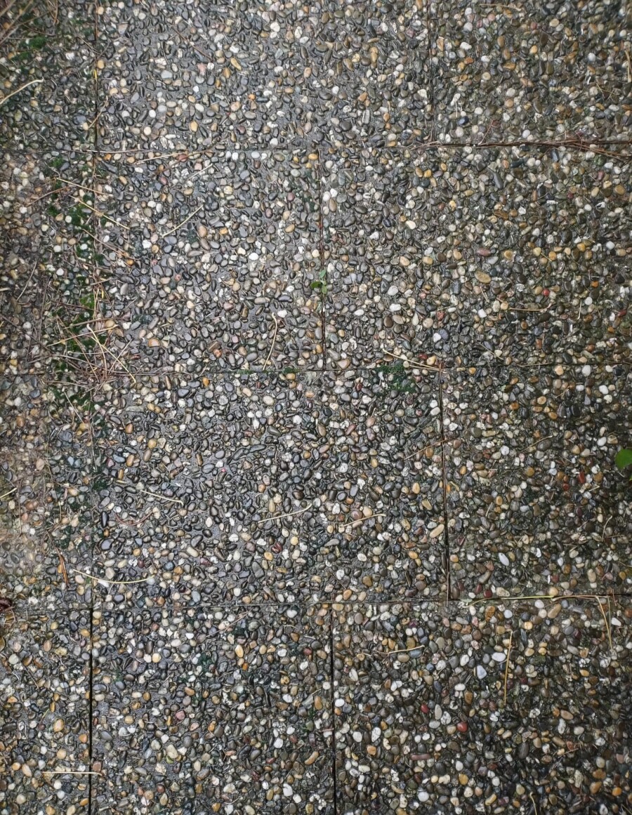 | Beschreibung | Waschbetonplatte (als Gartenweg genutzt), nicht verklebt (liegt auf Kiesbett) | |