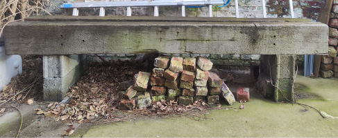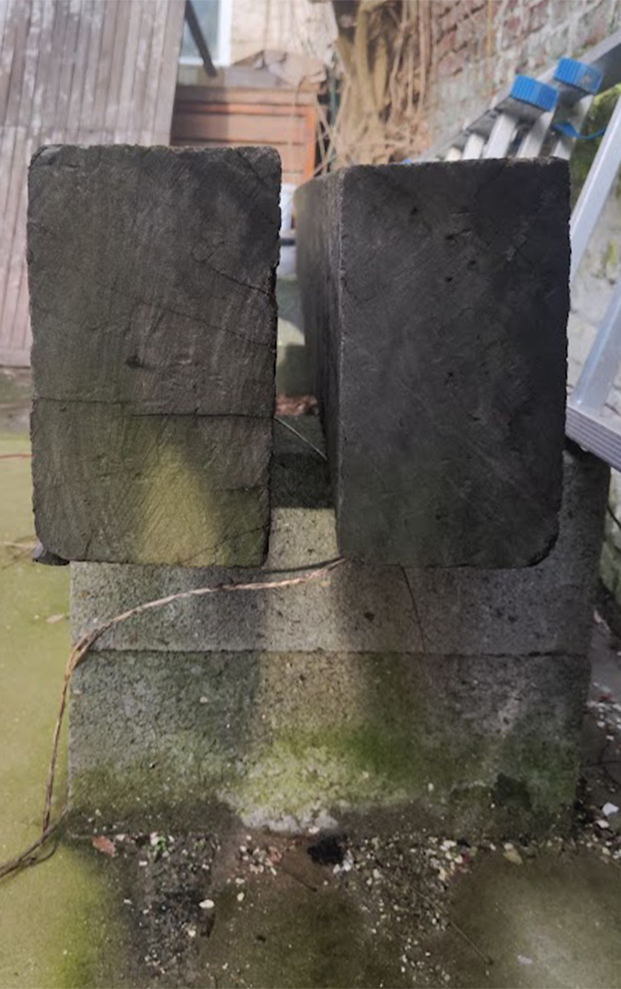 | Beschreibung | Zwei Bahnschwellen auf Holz | |