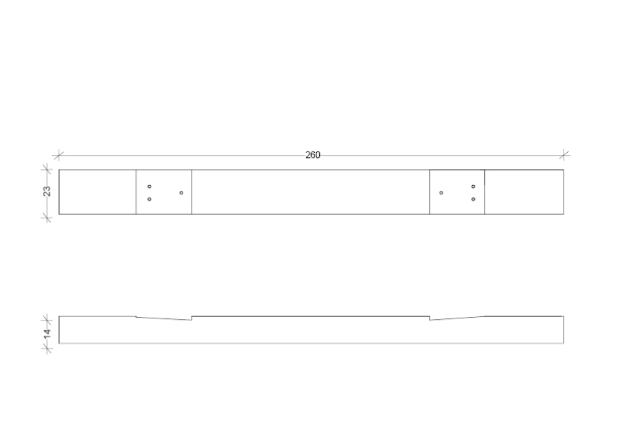 | Dimensionen | 14x24.5x259 cm und 14x23x260 cm | |