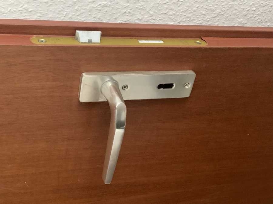 | Beschreibung | Büro-Holztür, dunkel Furnierschichtholz Zustand: sehr gut Aufarbeitung: keine | |