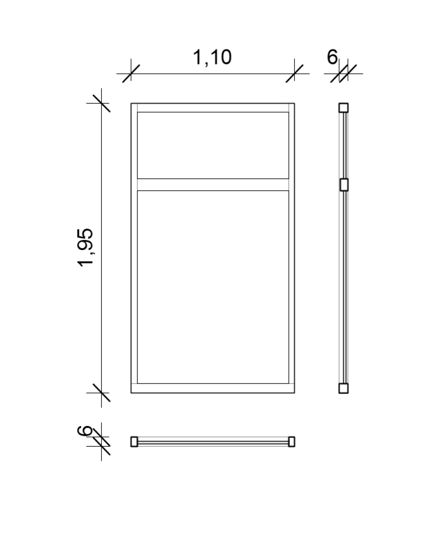 | Beschreibung | Zweigeteilter Aluminiumfensterrahmen, doppelt verglast. Fenster sind nicht öffenbar. | |