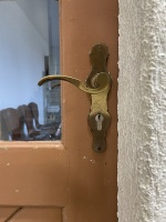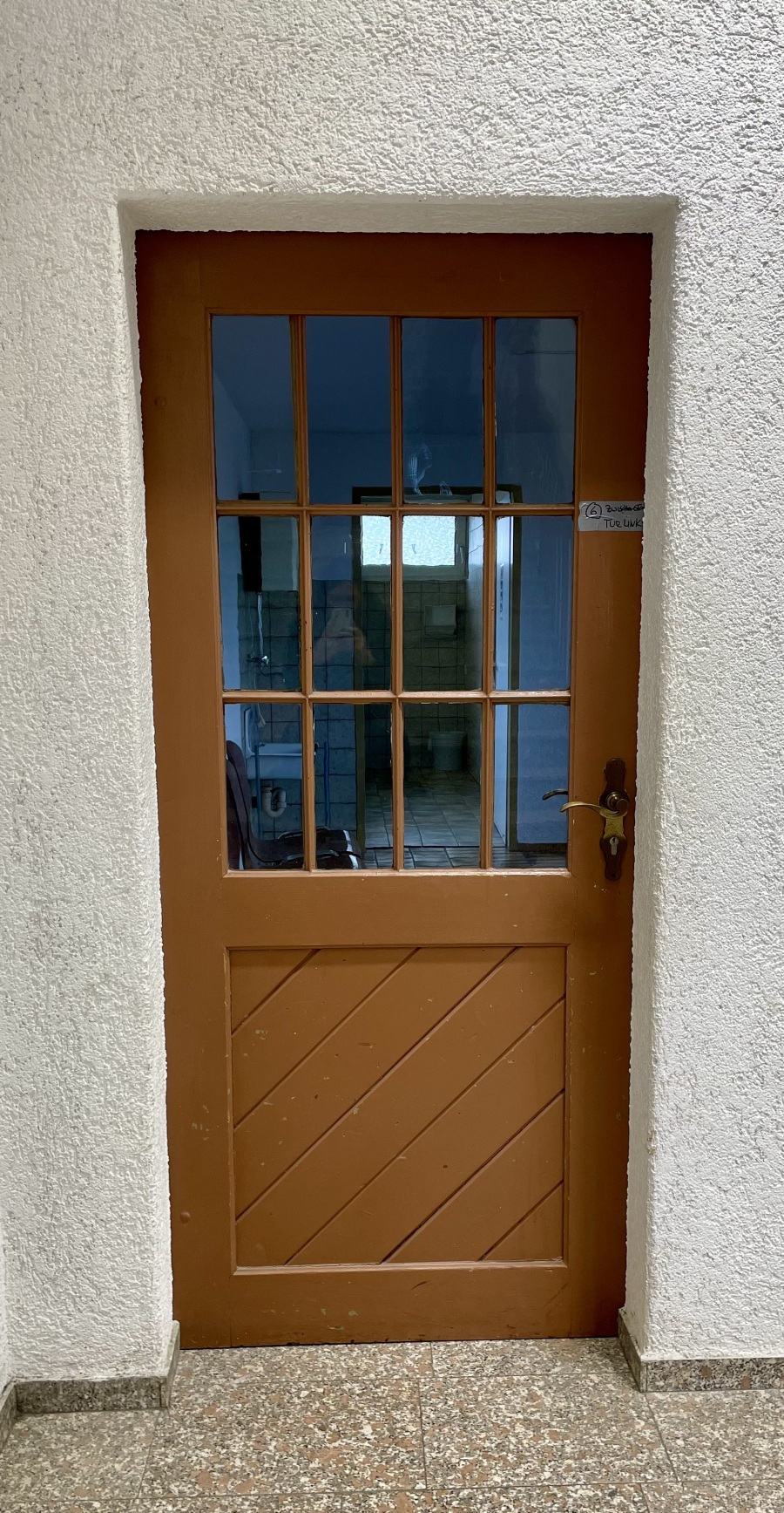 | Beschreibung | Innentüre aus massivem Holzrahmen mit Glas- und Holzeinsatz DIN rechts | |