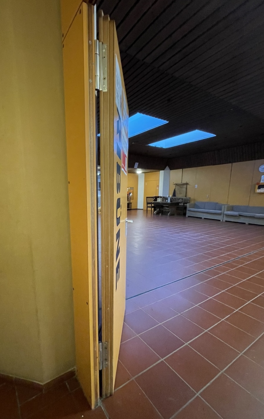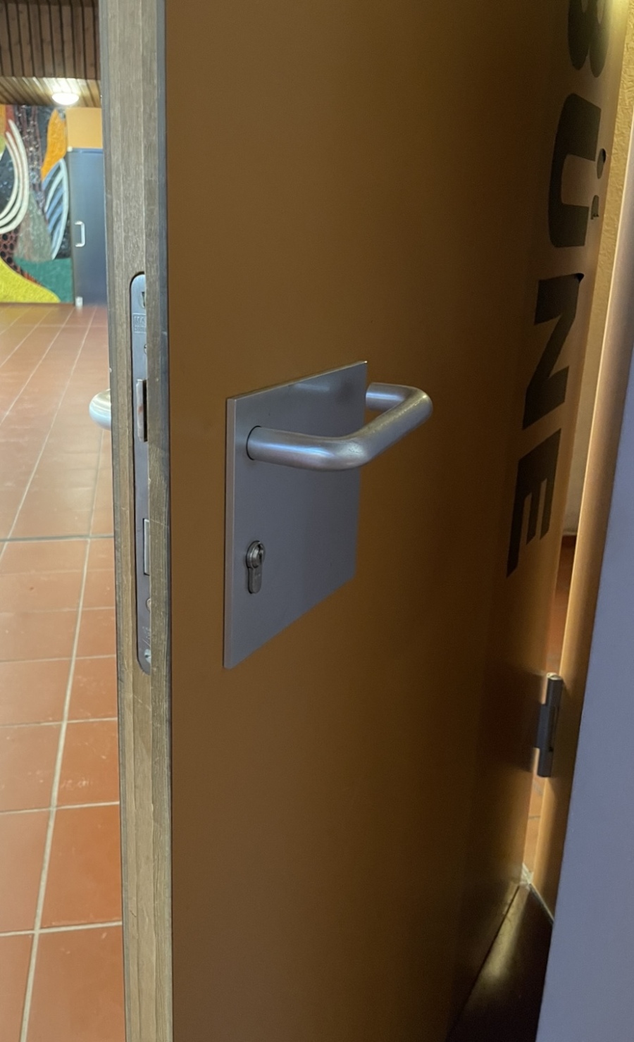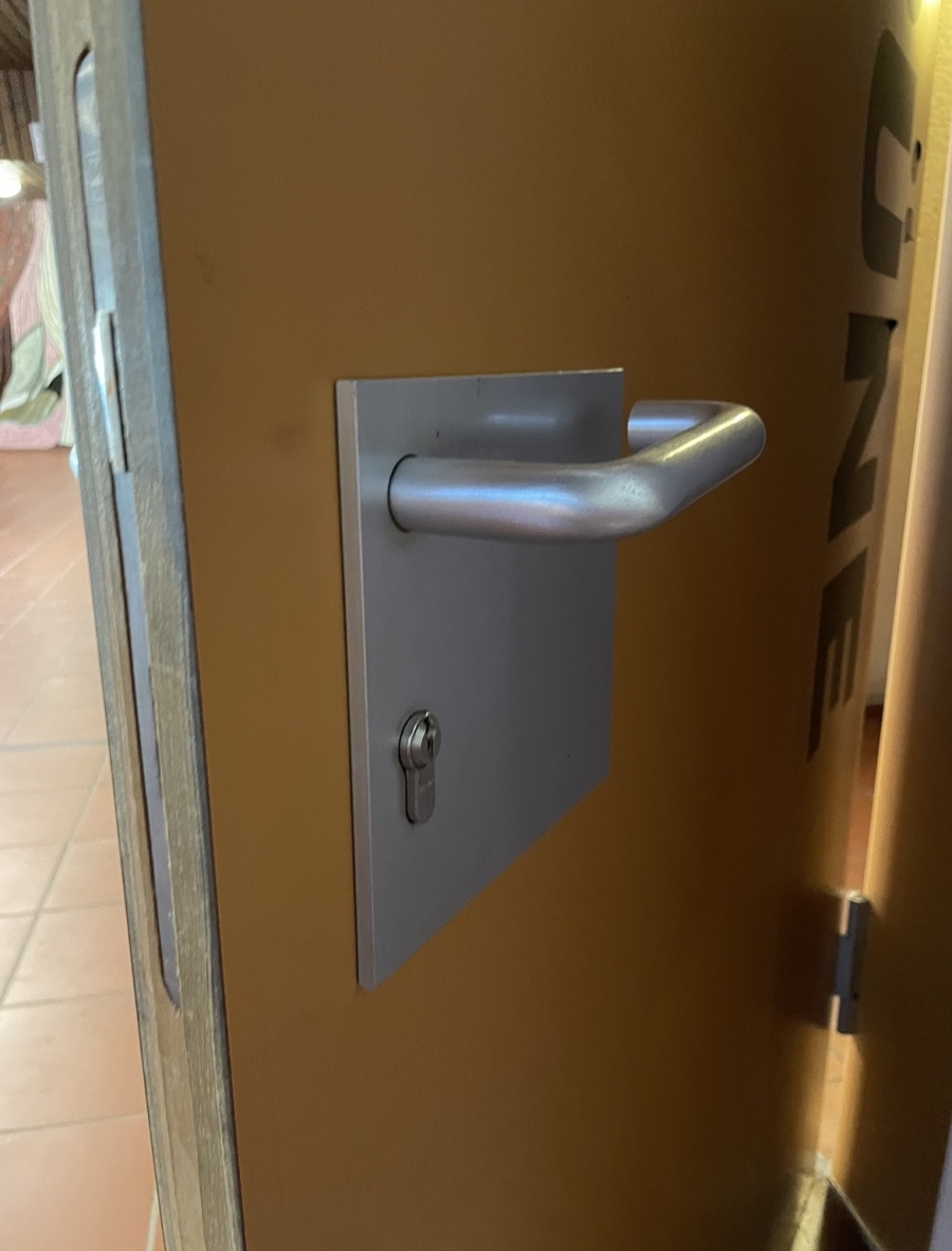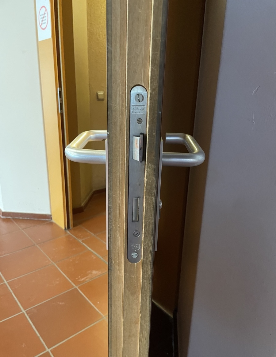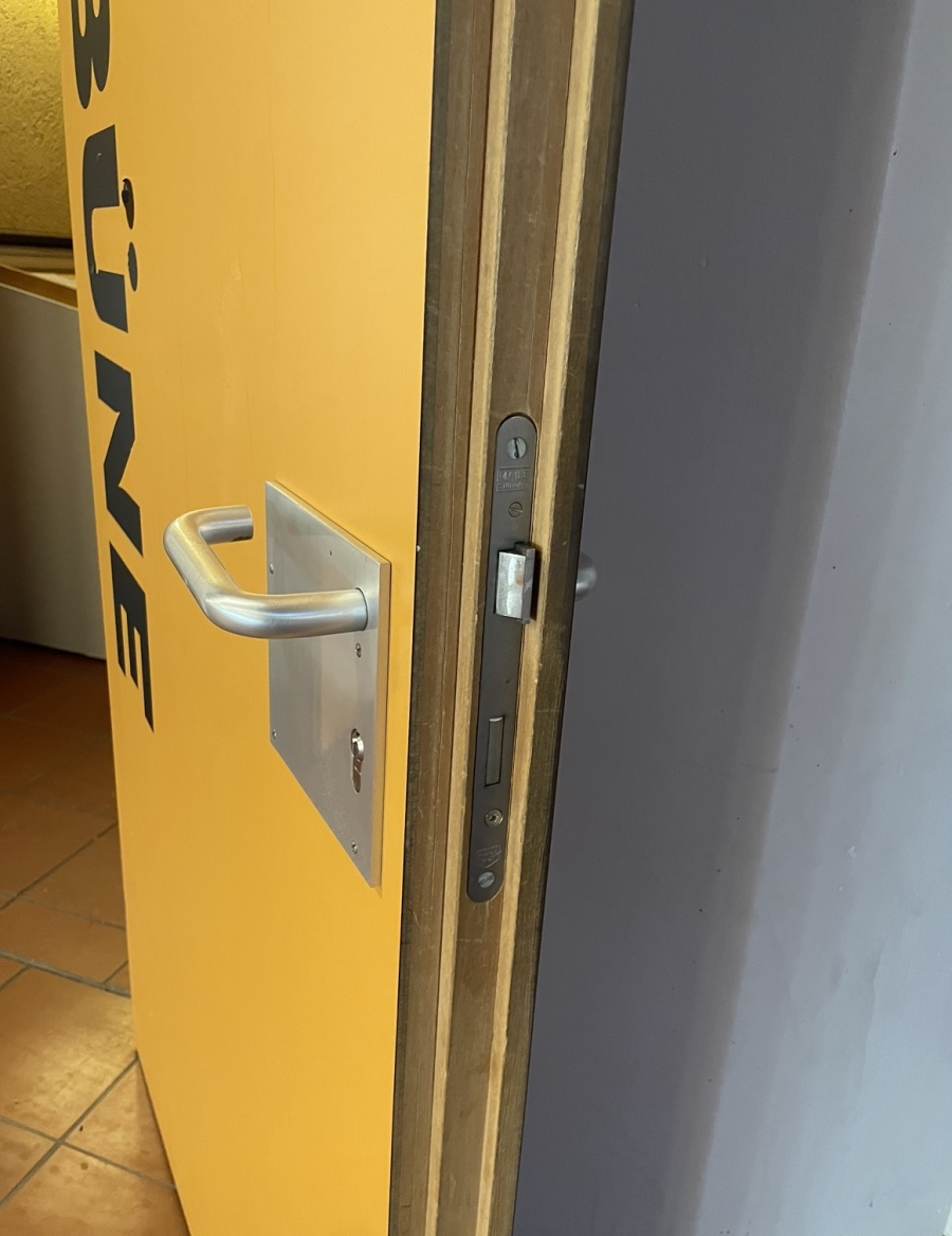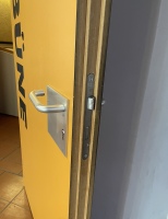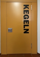 | Beschreibung | beschichtete Holztüre aus Sporthalle | |