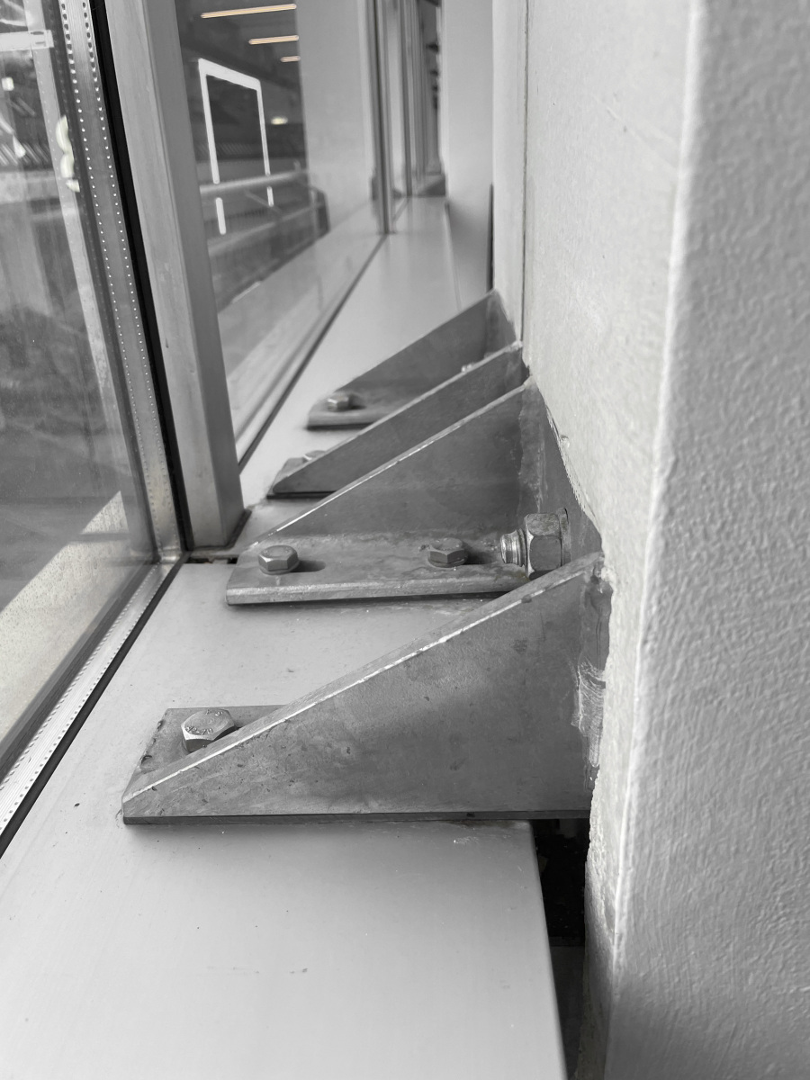 | Beschreibung | Das Verbindungsanker ist mit der bestehenden Stahlbetonstütze verschraubt und verbindet sie mit der Rahmenkonstruktion, die die Fensterscheiben der Glasfassade trägt. | |