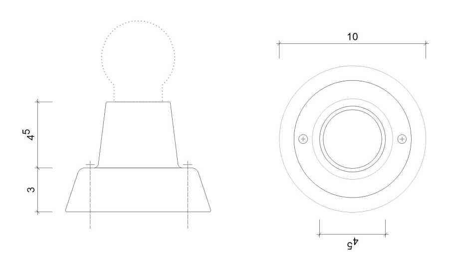 | Dimensionen | Ø 10cm, H: 7,5cm, Ø Fassung: 4,5cm | |