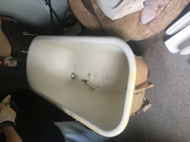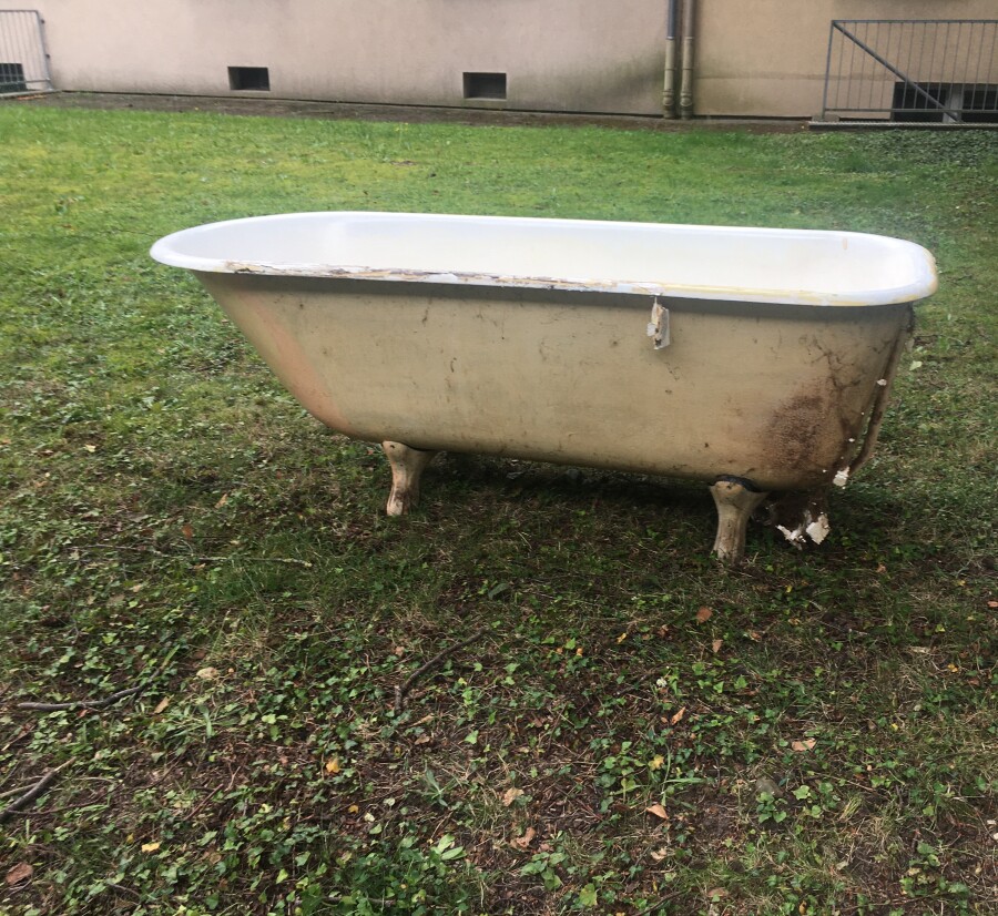 | Beschreibung | Für Bastler*innen: Eine gusseiserne Badewanne die freistehend im Raum angeschlossen werden kann, mit etwas Aufbereitungbedarf. Die Oberfläche ist mit einer Schicht aus Emaille versehen, unterseitig sind Lackierspuren markant. Die vier Löwenfüße, in Verbindung mit der Errichtung der Siedlung am Buschwiesenweg um 1935, verweisen auf ein frühes Design des 20. Jahrhunderts. | |