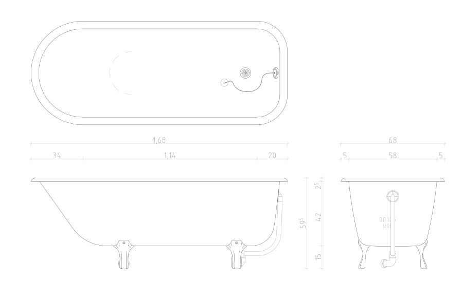 | Bestandteile | Emaillierte Gusseisenbadewanne, mit vereinfachten Löwenfüßen |