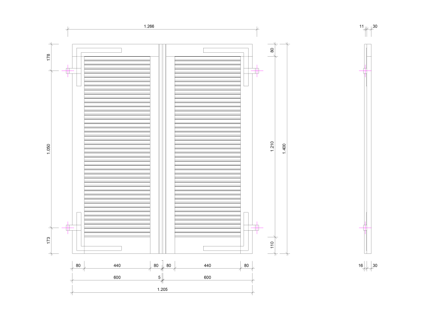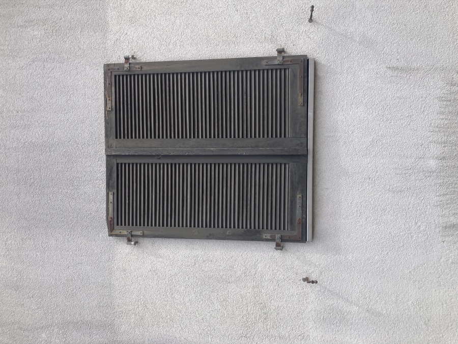 | Beschreibung | Fensterladen, Klappladen mit unbeweglichen Lamellen für eine Durchlüftung. Beschläge bestehen aus verzinktem Stahl. | |